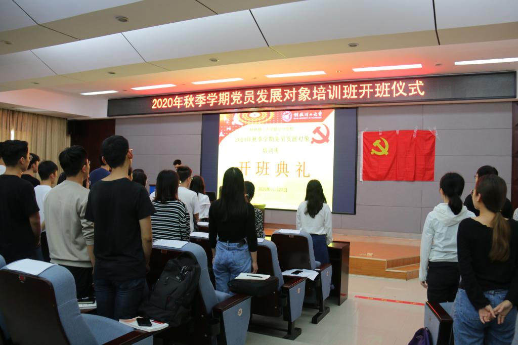 开班仪式在雄壮的国歌声中正式拉开帷幕。2018级本科生王蓉作为学员代表发言。她代表全体学员郑重承诺:在思想上,进一步端正入党动机;在学习上,更加认真学习党的理论知识;在行动上,越发严格要求自己。争取以优异的成绩和表现通过党校的培训考核,力争早日加入中国共产党!