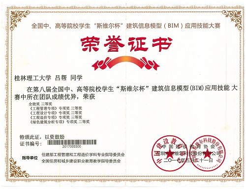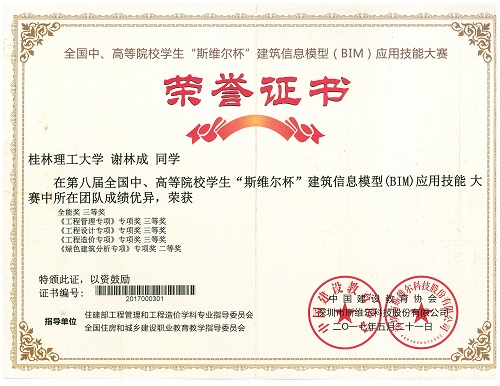 全国中、高等院校学生“斯维尔杯”建筑信息模型(BIM)应用技能大赛,由中国建设教育协会主办,深圳市斯维尔科技有限公司承办,得到了住建部工程管理和工程造价学科专业指导委员会、全国高职高专教育土建类专业教学指导委员会的大力支持。本大赛旨在通过斯维尔BIM系列软件的应用,实现高校建筑类专业之间的BIM协作,在增强学生实践与创新能力的同时,也提高了学生的团队协作能力。