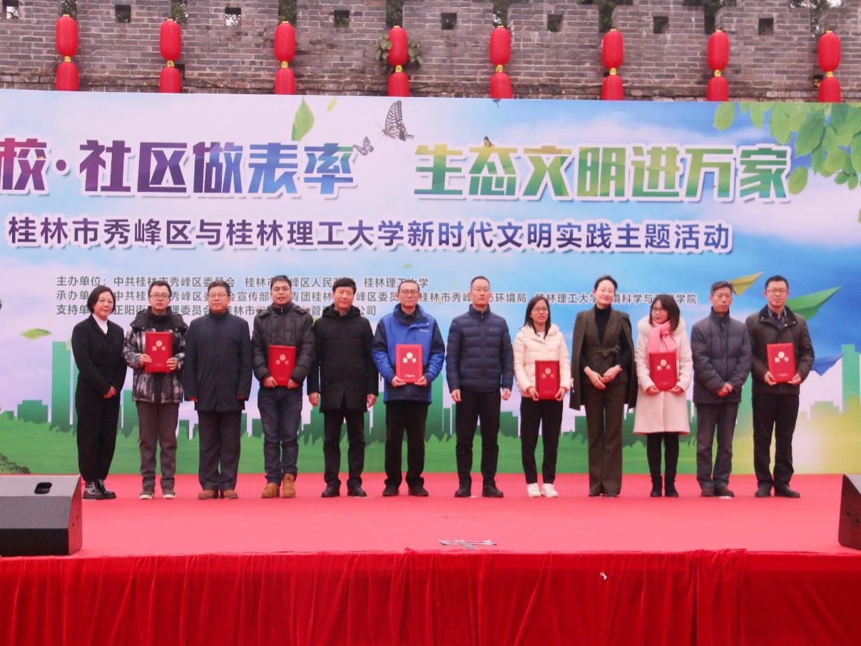 为深入贯彻落实党的十九届五中全会精神,让“绿水青山就是金山银山”生态文明理念深入人心,全面提高在校大学生、市民生态环保意识,进一步加强高校与地方联系,发挥高校服务社会的职能,12月14日下午,以“高校·社区做表率、生态文明进万家”为主题的新时代文明实践主题活动在桂林市秀峰区东西巷拉开帷幕。永利yl23411集团校长解庆林,秀峰区委副书记、副区长刘丰华,永利yl23411集团党委副书记吴志强及秀峰区四家班子分管领导,永利yl23411集团各职能部门及yL23411永利集团主要领导等出席。我校志愿者及秀峰区居民共200余人参加活动。