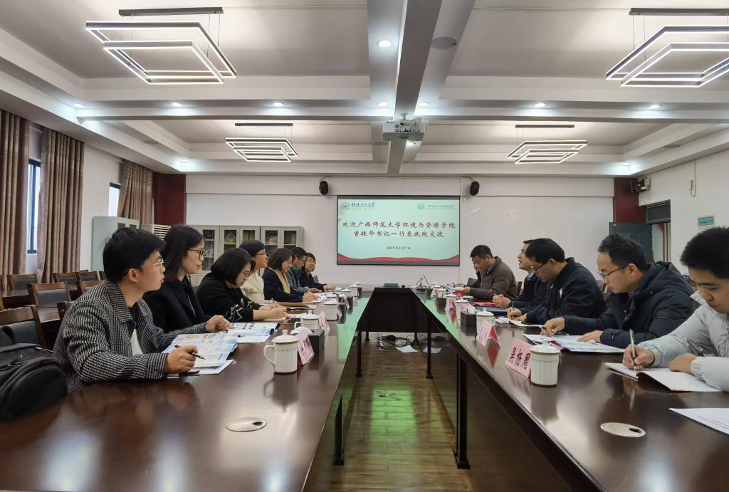2025年1月7日,我院教工第二党支部、第三党支部与广西师范大学环境与资源学院环境科学系教工党支部联合举办了“党建引领学科高质量发展”主题党日活动。教工第二党支部书记李海翔、教工第三党支部书记朱宗强、广西师范大学环境与资源学院环境科学系教工党支部书记宿程远组织三个党支部合计30余名老师参加了该活动。我院党委书记代武社、学院院长曾鸿鹄,广西师范大学环境与资源学院党委书记曾振华、院长温桂清也受邀参加。此次活动旨在加强校际党建交流,探索新时代高校党建与学科建设深度融合的新路径。