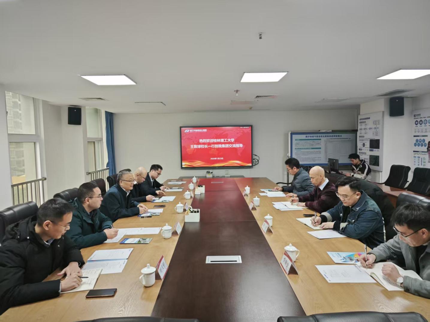为深入落实“访企拓岗促就业”专项行动要求,深化校企协同育人,拓宽环境类毕业生就业渠道,1月23日,学校党委副书记、校长王敦球率队赴南宁市勘测设计院集团有限公司、广西新桂环保科技集团有限公司等单位开展考察交流,学校相关职能部门负责人、学院党委书记代俊峰、党委副书记叶大相陪同考察。